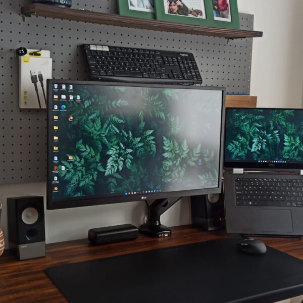 Movimiento de rotación, elevación e inclinación, puerto USB y jack de audio 3.5. VESA 75×75 y 100×100 mm.